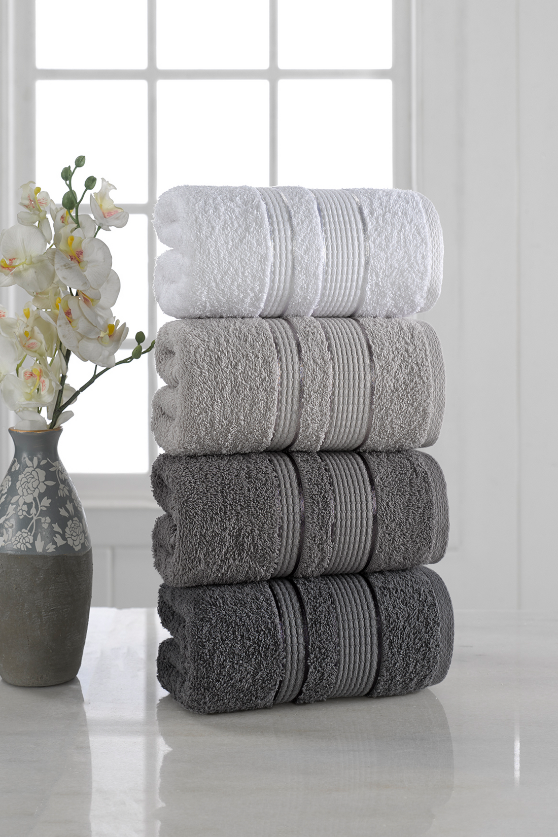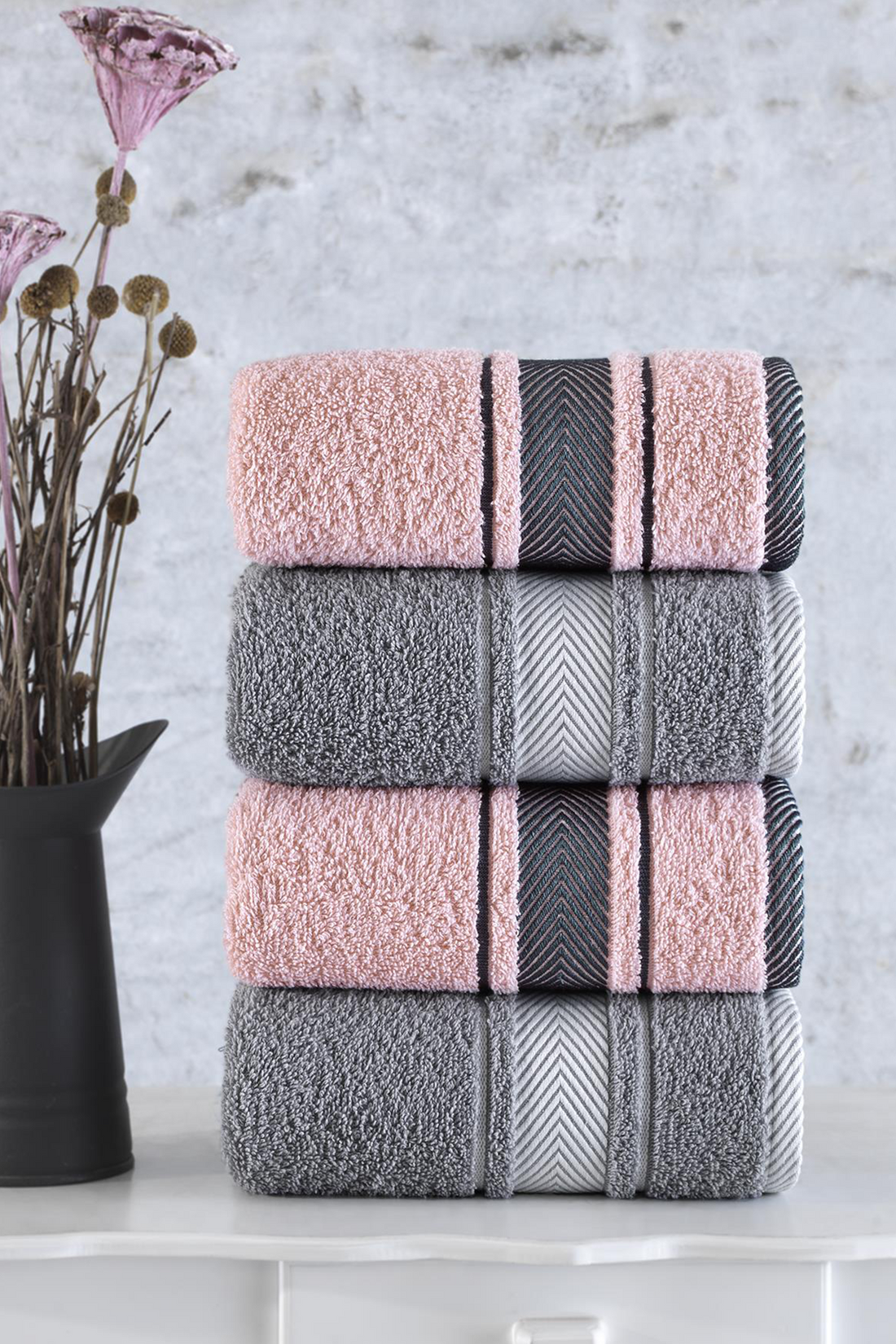 Edyth -Mila - Gri - Pamuk - 4lü- Lüks El Yüz Havlusu