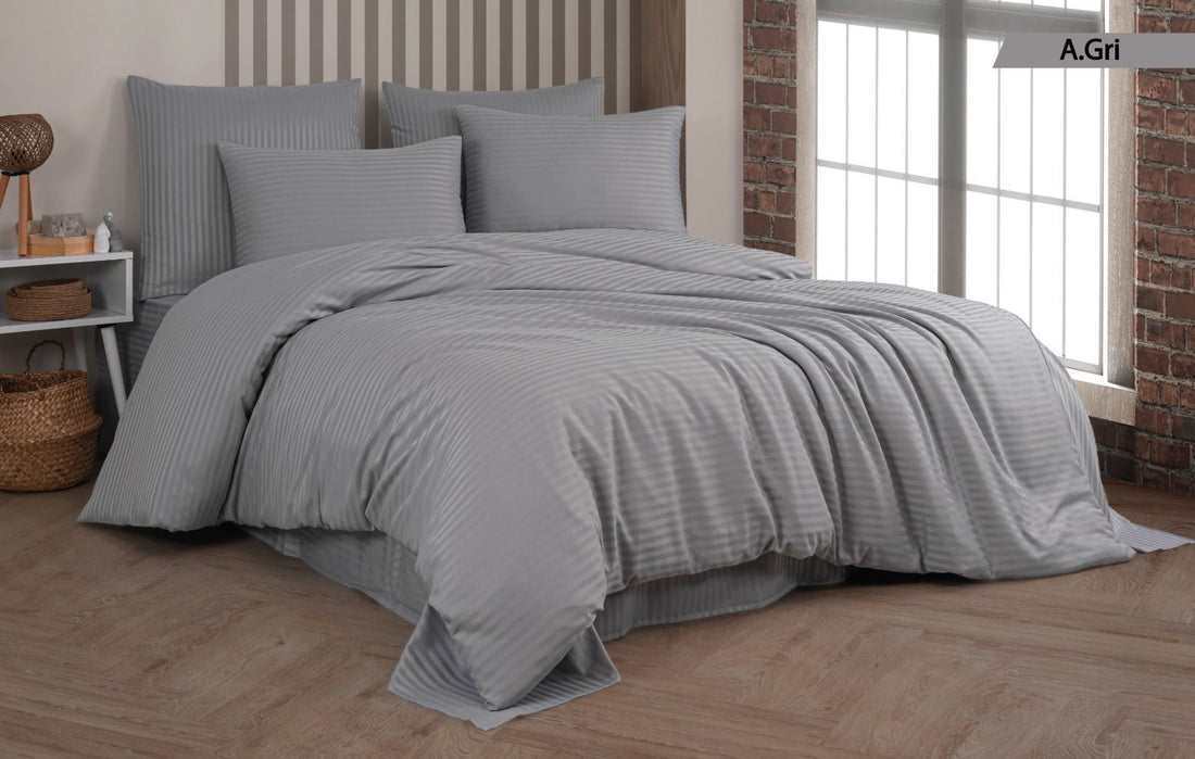 Deluxe %100 Pamuk Saten Çift Kişilk Nevresim Takımı -A.Gri
