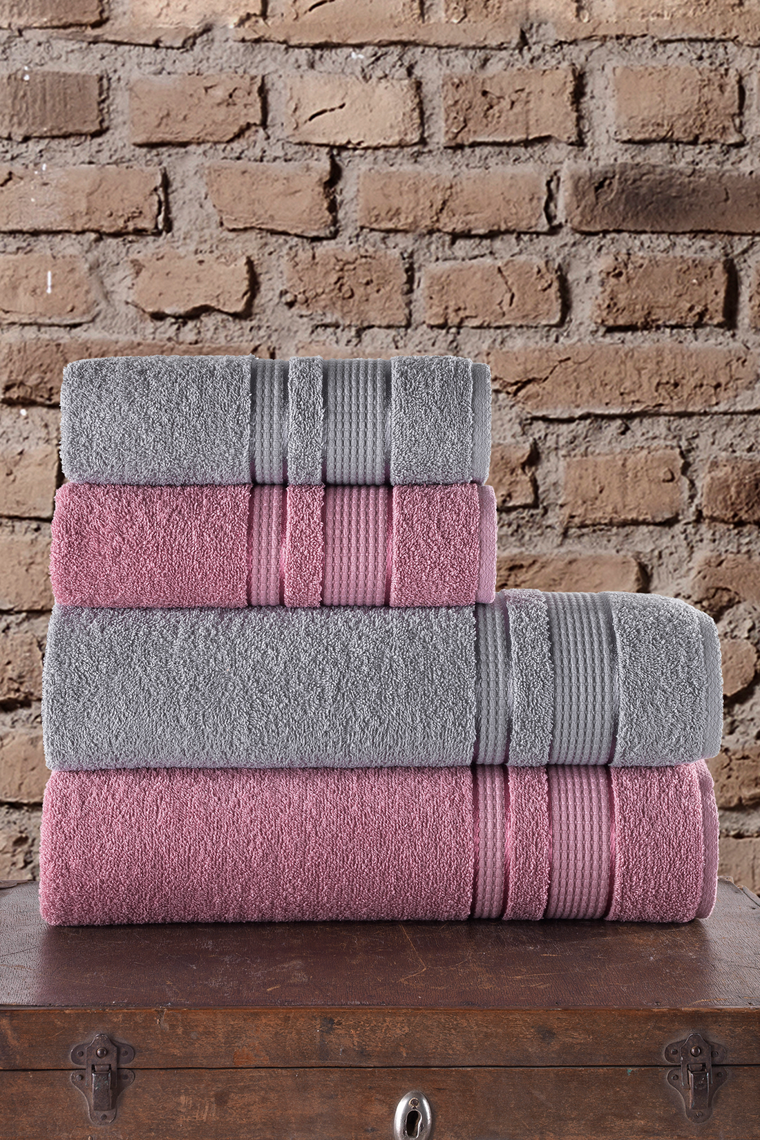 Emilia- Softly - Gri - Pamuk - 4lü - Lüks El Yüz Havlusu