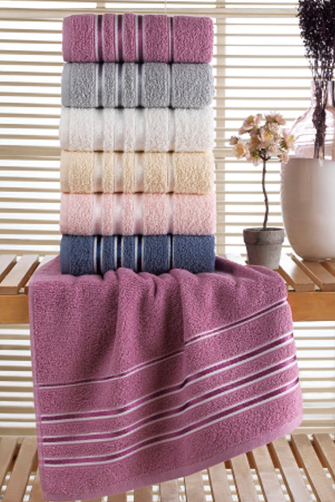 Estefani - Ella Krem Mor - Banyo Havlu Seti - 4 Parça