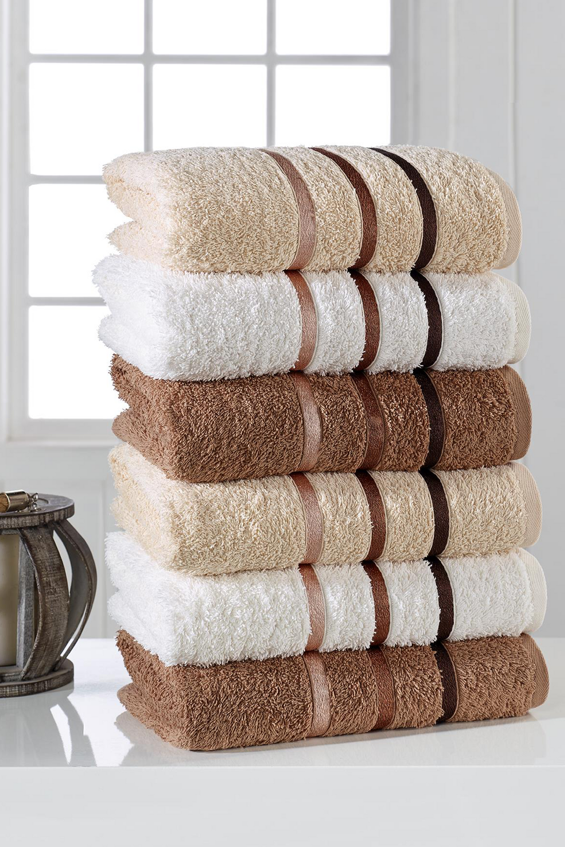 Edna- Line Kahve - Pamuk - 6lı- Lüks El Yüz Havlusu