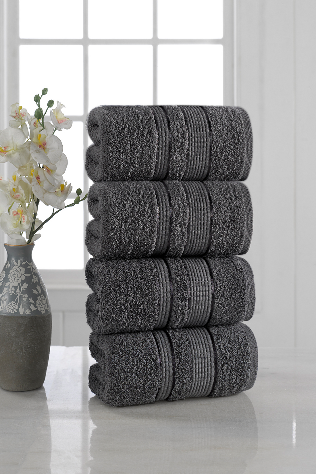 Ellinor- Softly - Antrasit - Pamuk - 4lü- Lüks El Yüz Havlusu
