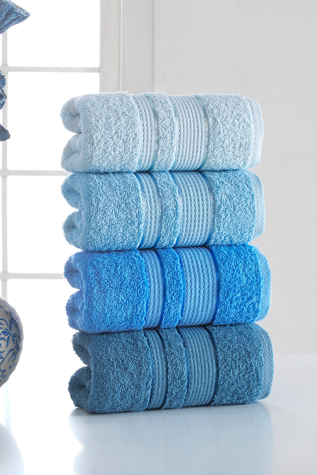 Eve - Softly - Mavi - Pamuk - 4lü- Lüks El Yüz Havlusu